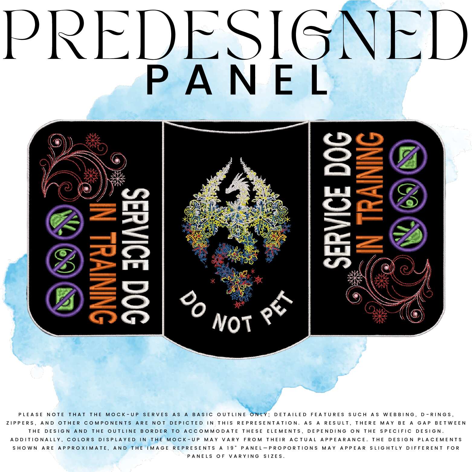 Elevate your service dog's visibility and style with our predesigned service dog panel, expertly crafted for functionality and flair. This listing is for a single panel, featuring a beautiful SR shape (cut at the neck; extended center panel), designed to keep your furry companion looking sharp while effectively communicating their important role.
