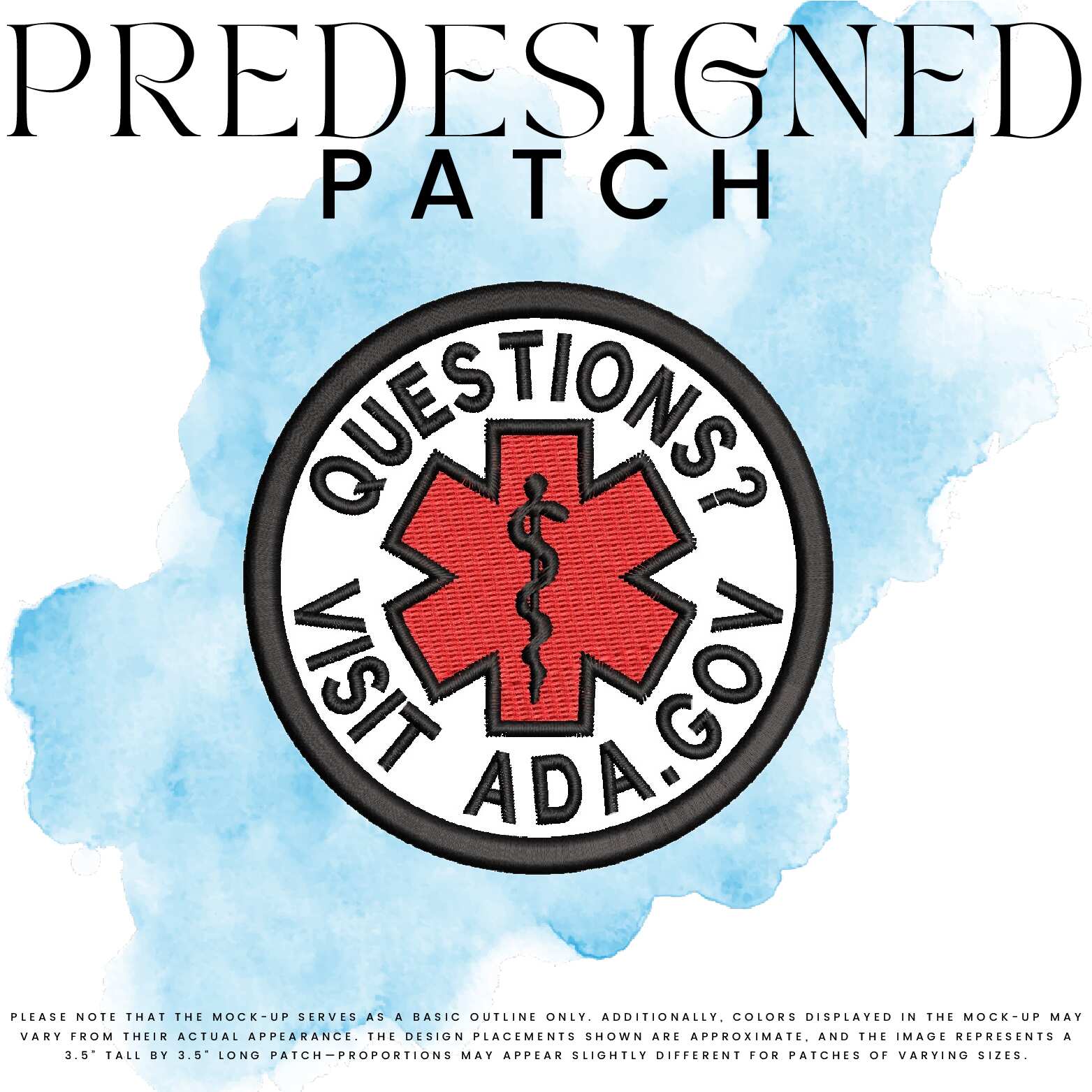 QUESTIONS? VISIT ADA.GOV-MEDICAL SYMBOL (filled in)