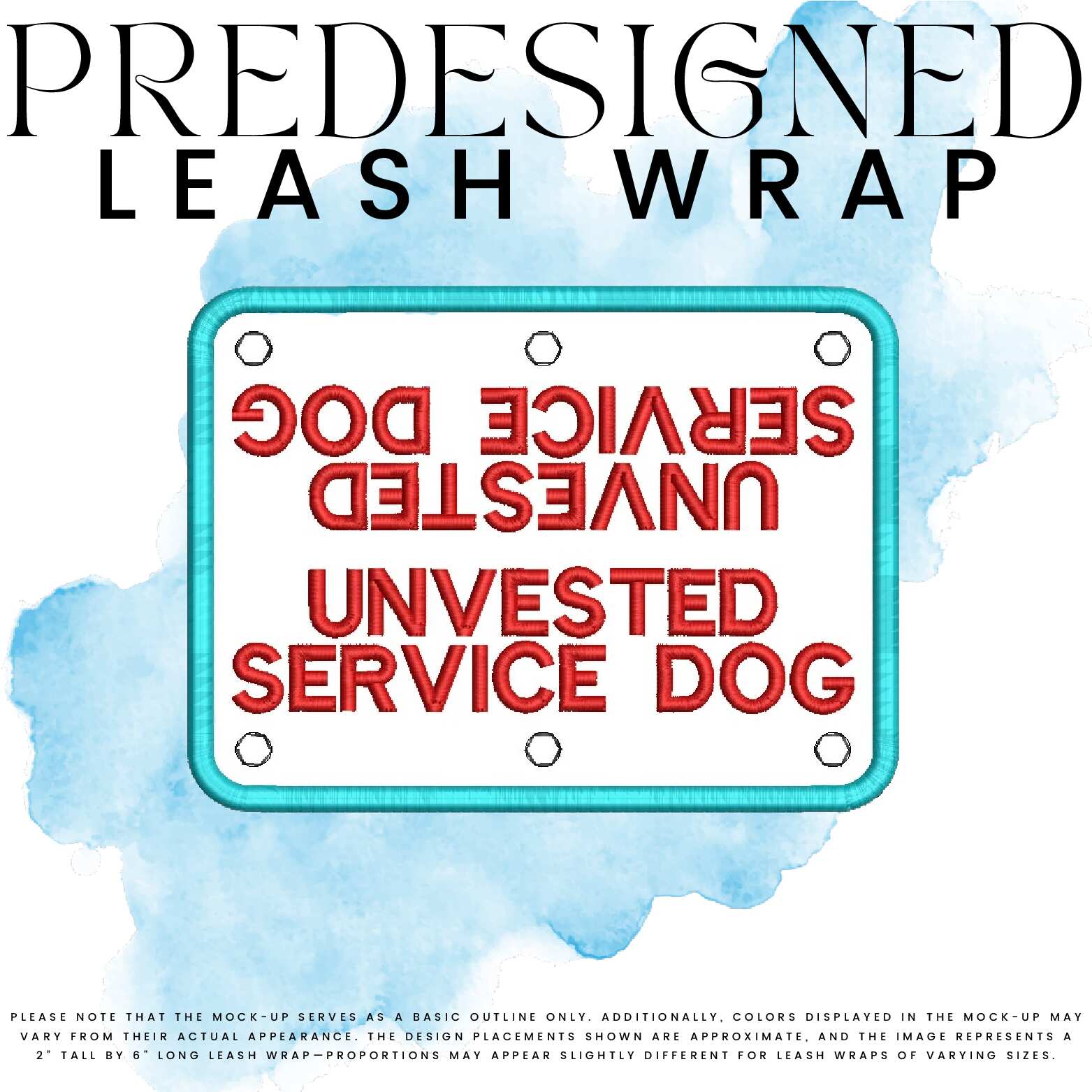 Elevate your dog's gear with our versatile predesigned leash wrap, available in three convenient sizes: 2" x 4", 2" x 5", 2” x 6”, 2.5” x 8”, and 3.5" x 12". Crafted for durability and style, these leash wraps are designed to advocate for your pup in any environment. These wraps provide clear, easy-to-read visibility while securely snapping around your leash for quick and effortless use.
