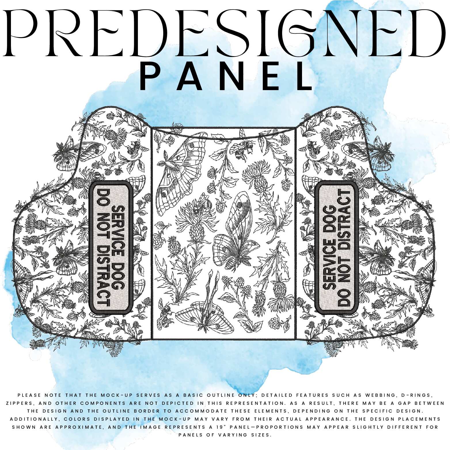 Elevate your service dog's visibility and style with our predesigned service dog panel, expertly crafted for functionality and flair. This listing is for a single panel, featuring a beautiful y-front butterfly shape (cut at the neck of the center panel), designed to keep your furry companion looking sharp while effectively communicating their important role.