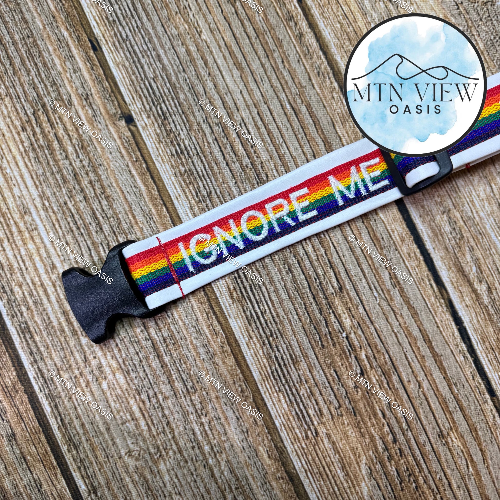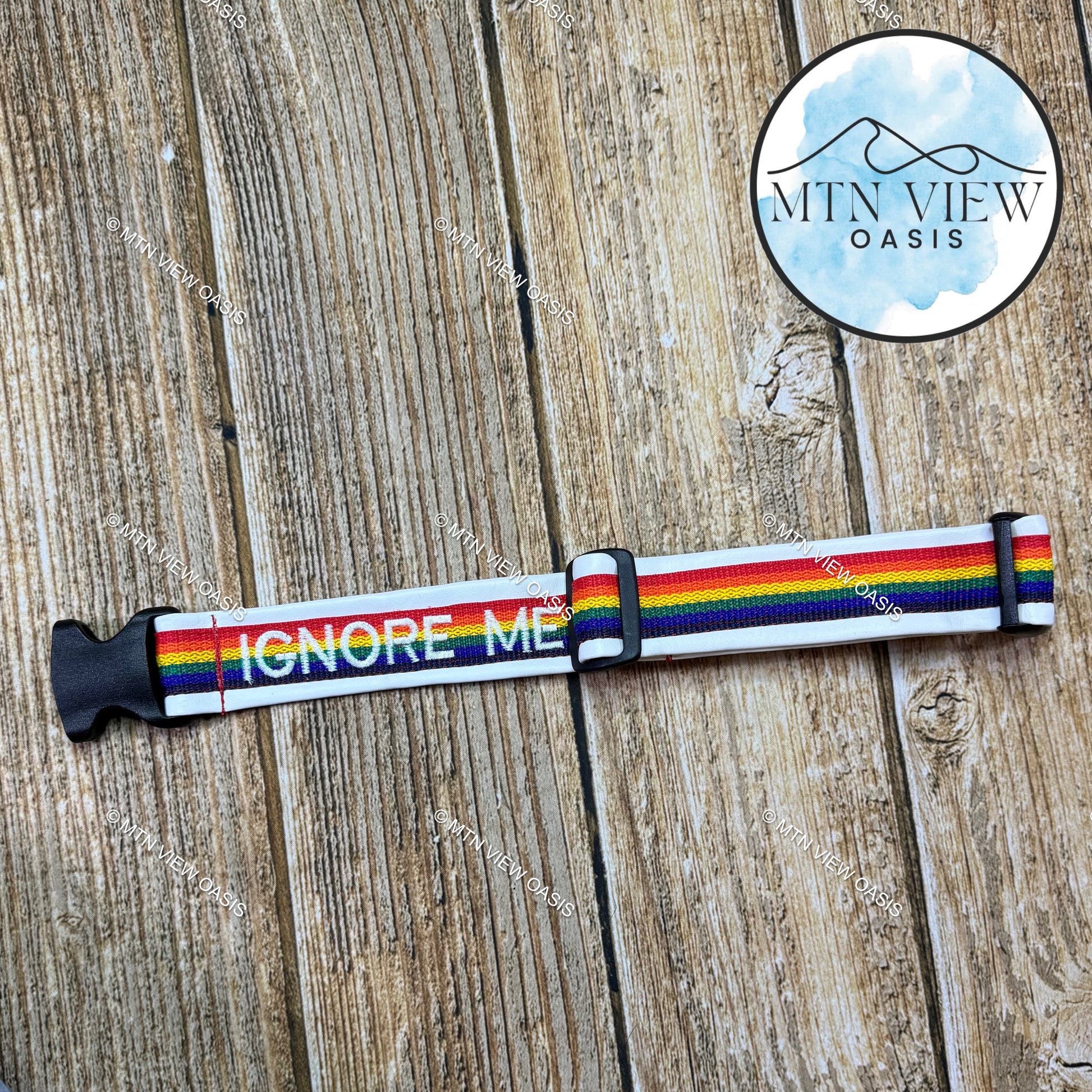 This collar features a white underside with a rainbow top layer, accented by embroidery in white thread. Colors may appear different in person due to lighting and screen settings, but we’ve done our best to capture them accurately in the photos.